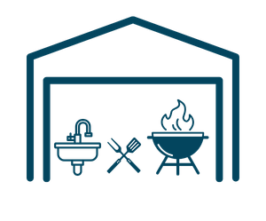 Desfrute também da nossa área de lazer externa em um quiósque com churrasqueira, pia e mesas ao ar livre.