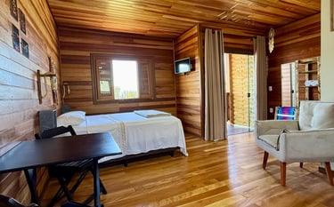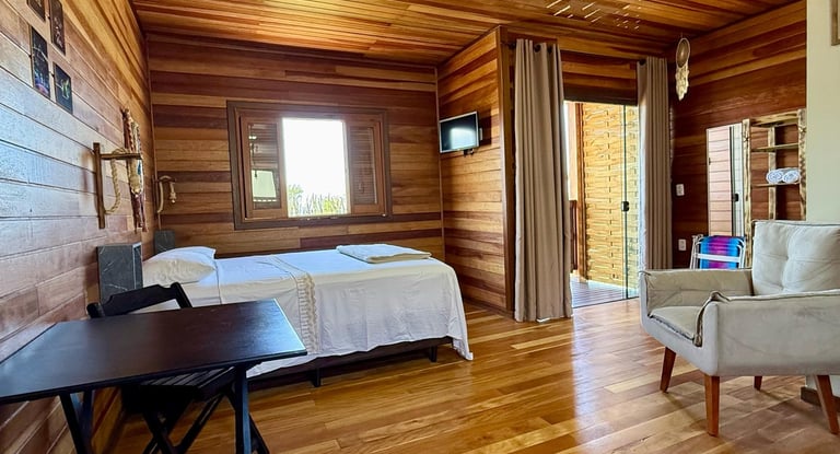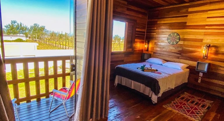 A Village Rock pousada foi pensada para proporcionar um ambiente aconchegante e tranquilo para sua estadia. Construída em madeira nobre conta com quatro suítes que acomodam confortavelmente de 2 a 4 pessoas conforme as suas configurações. Duas das nossas suítes possuem sacada com uma linda vista para o mar e em poucos passos você está na praia.